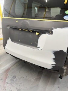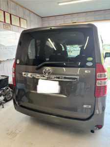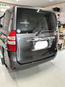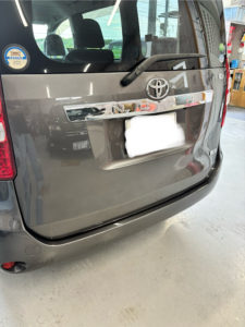 トヨタ ノアのバックドア、リヤバンパーの修理入庫です。