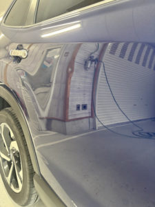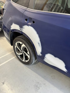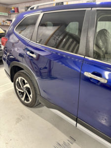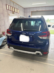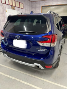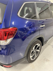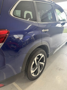 スバル フォレスターのリヤフェンダー、リヤドアの修理入庫です。