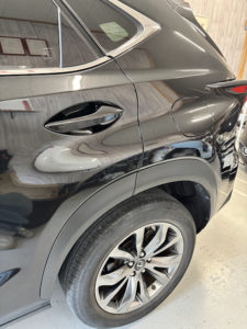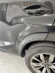 トヨタ レクサスNX200のリヤドア、リヤフェンダーの修理入庫です。