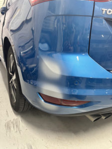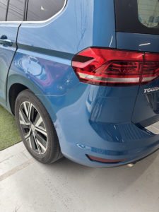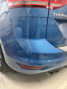 ワーゲン トゥーランのリヤバンパーの修理入庫です。